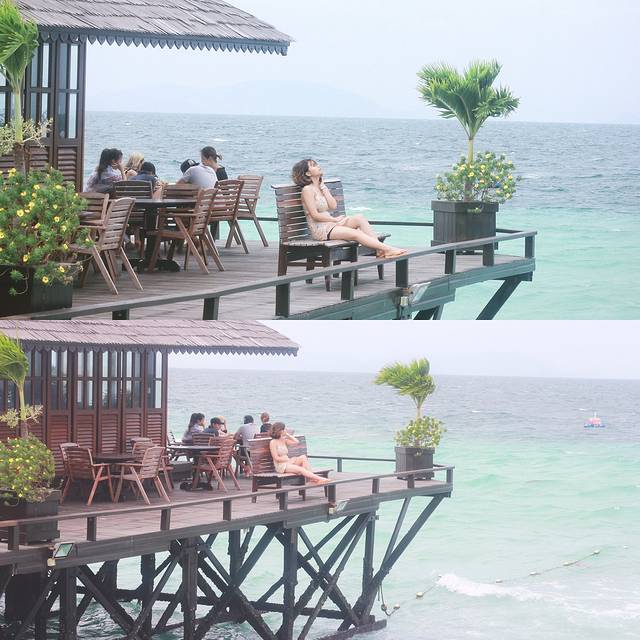 今天天气不太好,浪特大,船颠簸的特别厉害,感觉胃都快甩出来了,到了水上屋,这里没有岛得,我们住的三天两夜海景房,有中文介绍,给我们讲解了很多安全知识和。随时都可以吃点心咖啡这些,我们等到两点才能入住,酒店人员都很热心,很安全,有驻兵,随时可见到。到了两点去房间,美死了,超级大,建议早点定,提前两个月定,定后面的房间美,我们是52号,我觉得已经很棒了,就在这里静静的吹风,晚上风浪特大,听着有些渗人,好怕吹翻了房屋似得,有时候还会抖两下,反正夜晚睡的不太好,风浪大的话。只有餐厅有wifi.可是我到走都没有连上,不过手机有信号,偶尔信号挺好