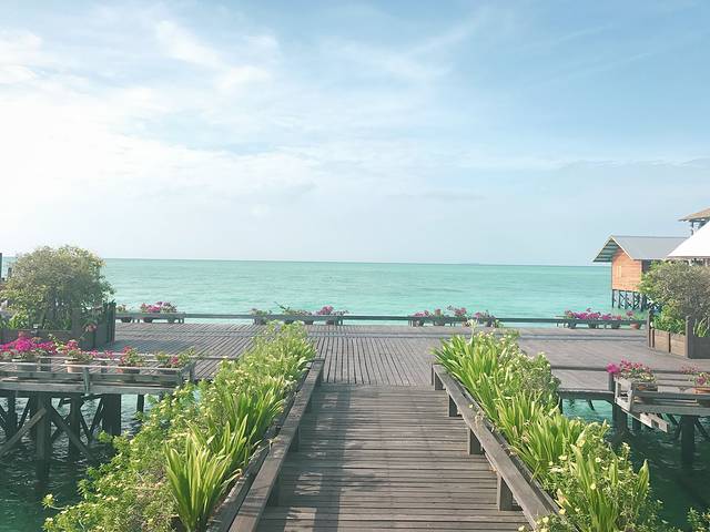 今天,早早起床,吃了早饭,到处走走,拍拍照,下午就去浮潜。浮潜是免费的,但是怕得人可以请教练,50马币!装备都可以租,也不贵,可以深潜,不过比较贵一个人400多马币!餐厅可以看日落,不一样的感觉,还是很美,晚餐还是很丰富的,只是我一直吃不太喜欢这边得食物。夜里风浪又是大的厉害。不过今天看到了大海龟,好幸运。