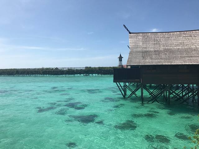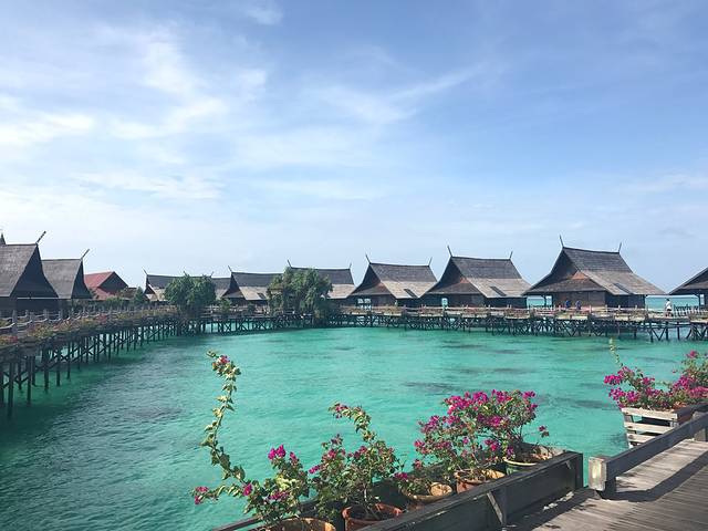 从亚庇城里来到这个度假村,40多分钟的样子,坐优步24马币,本来想定香格里拉大酒店的,可是定完了,没有房了,就定的这里,到了还是觉得很不错了。一样能看日落。酒店很多中国游客,比较偏,但是环境好,还不错,性价比也高,也有私人沙滩