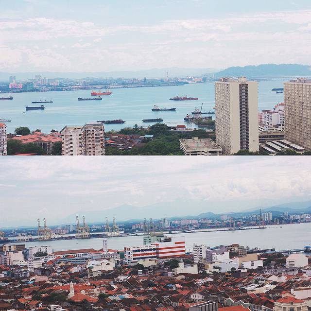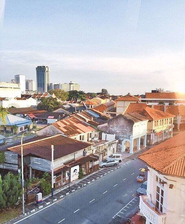被老公这个他所谓的英语小王子,忽悠了,错过了,飞机,又匆忙的重新买票,一天都在行程中,终究还是到了槟城。从要下飞机开始我就对这个城市充满了好感,矮洋房,文艺的街道,重点是大部分人都会中文,哈哈!
