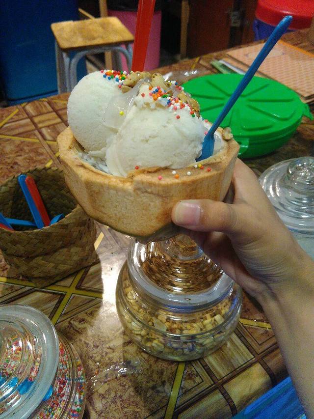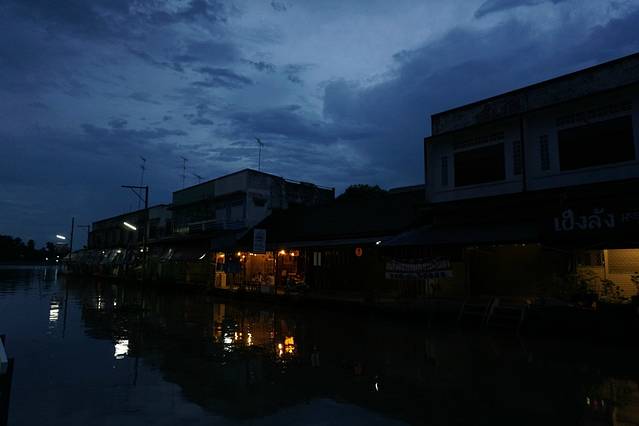 晚上我们就坐在这里,看着没有夜市的水上市场安静的夜景。当时觉得要是能撸点儿串儿就更美了。