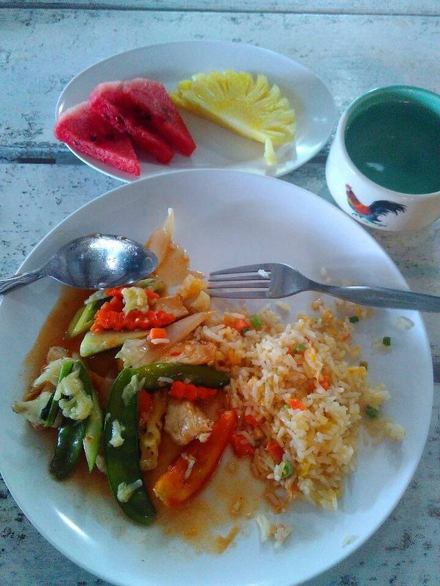 岛上的午餐,看到网上有人吐槽。个人觉得挺好的,完全是中餐啊!回程的时候给发一小瓶饮料,还有菠萝和西瓜吃。