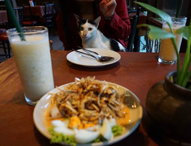 看着我们想了一会儿,转身去给邻桌的泰国人讲去了。这史无前例的默契啊!