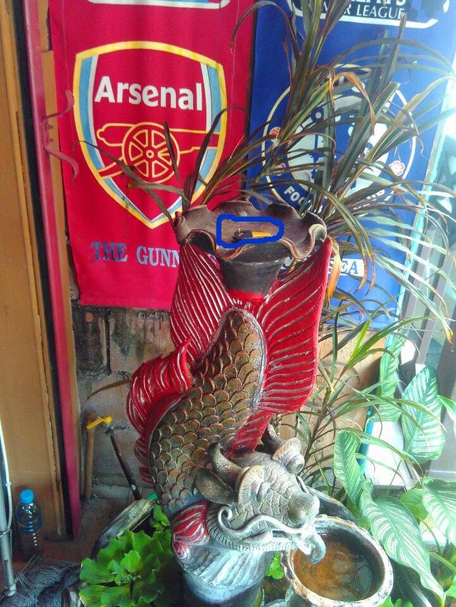 走的时候是早上,只得把钥匙放在了门口的这个小鱼里。