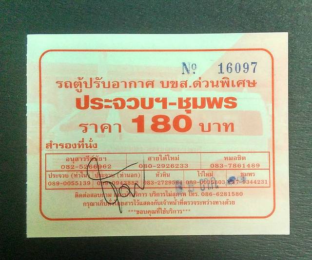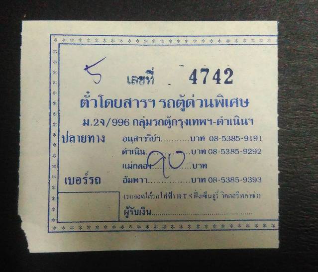 把地址给了大爷,开始商量价钱,最后讲定是450B,大爷不放心,找了张纸,写上450让我们看。为了让他安心,我用泰语重复了一遍数字,大爷满意的坐上了驾驶位。