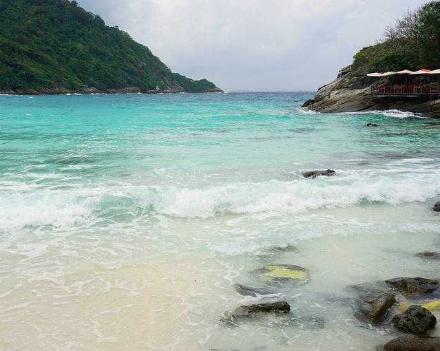 特点:水浅,清,浪大,海由浅入深有很多种颜色,最美。丽贝岛有三个海滩,日出海滩,日落海滩,salisa海滩。整个岛很小,可以徒步穿越,因为路途遥远,岛上东西也要稍贵一些,有一家7—11,价格是岛下的一倍,所以可以在其他商店里买。