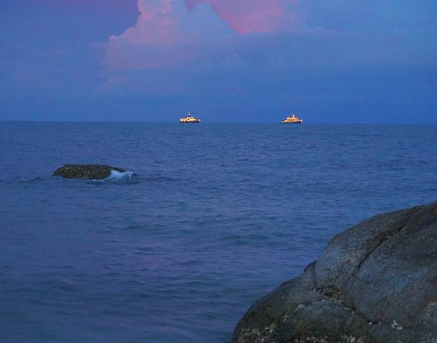 去的时候,刚下过小雨,船长爱搞事情,坐在了船头。那颠簸的真是酸爽啊,五脏六腑感觉都要颠碎了。船上的丹麦小伙子颠簸的像人事不省了一样。这种时候,船上的大爷还用泰式英语问我多少钱买的船票