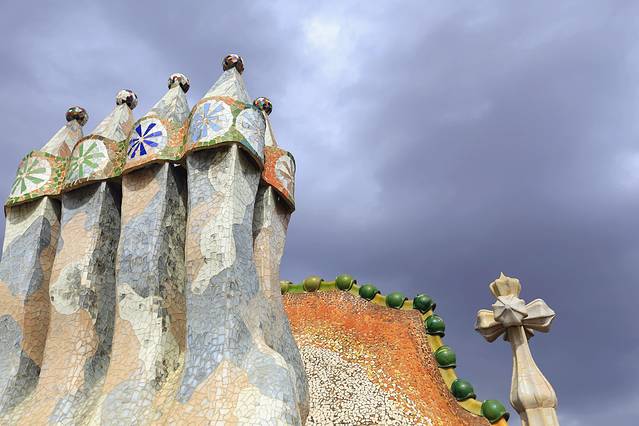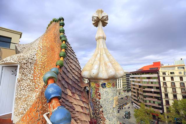 巴特罗之家就像一个海底乐园,波浪水花,鱼类贝壳,玻璃碎片与琉璃,顶楼屋檐上的一尾龙脊,惟妙惟肖。
