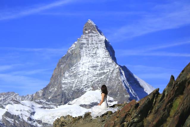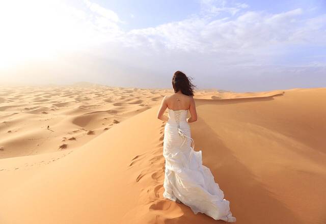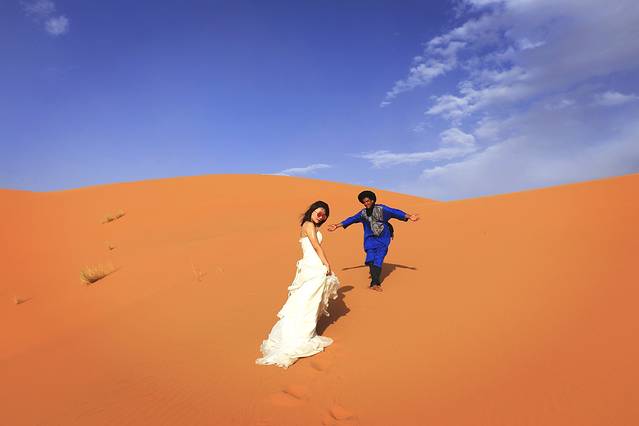 于是就有了2016年9月的“自驾+蜜月+旅拍” 行,我穿上婚纱踩下油门,你背起脚架按下快门。25天,我们北上采尔马特仰望马特洪峰,南下梅尔祖卡闯荡撒哈拉;在最富的摩纳哥对视过一双高傲冷漠的眉眼,也在最穷的非斯握住一个小孩粗糙的手掌。我第一次发现世界如此之小,六小时里能驾车折返三个国家,世界又如此之大,明明被同一片汪洋环抱,却滋养出天差地别的文明与文化。