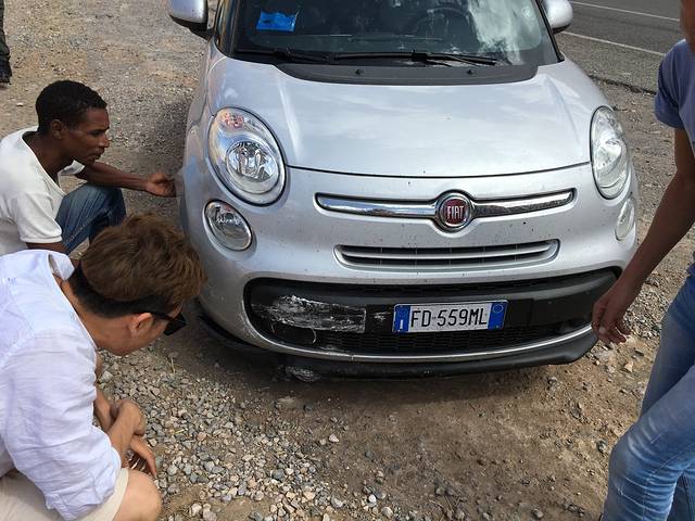 在北非的盘山公路上,我们一个刹车没刹住,小菲直接冲向山崖边的路肩,保险杠撞歪了,路肩也碎了。多谢几个热情的北非兄弟,带我们回镇上修车。我以为自己要永远留在北非了,光秃秃的、没有绿林溪水的北非。感恩冥冥之中保佑我的人,让我还能边喝茶边写下这一段经历。本来这只是属于几个人的小秘密,但我思考再三还是决定公诸于众,为了老生常谈的一句:驾车一定要谨慎!这便是我不会po在朋友圈给大家看的东西。旅行是一段苦行僧的过程,自己吞下苦与悲,酿出甜与乐,激励别人探索世界的精彩。