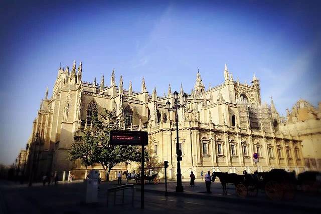 世界第三大教堂,斗牛场,弗拉明戈——塞维利亚的“三宝”。塞维利亚给我留下的直观印象即一片红,红色的鬼魅的灯光下跳起弗拉明戈的男女,铁锈红色斑驳的教堂内部,更不用提激情似火的斗牛场。比起马德里与巴萨罗那的繁华,塞维利亚好比一位沉默的耄耋老人,默默看护西班牙文化中最瑰丽的部分。也许走在街上,这座普通的城市无法博取你的好感,但请深入它的心脏,在烈日下摸一把斗牛场的黄沙;在塞维利亚大教堂,细细品味处于鼎盛时期的哥特风格艺术;一定一定要预订一场弗拉明戈的表演,小剧场内灯光俱暗,突然,近在咫尺的舞台上出现了妖娆的舞裙、撩人的歌声、清脆的脚踏,一波高潮带来一波更高的高潮……短短一小时却销魂无比。