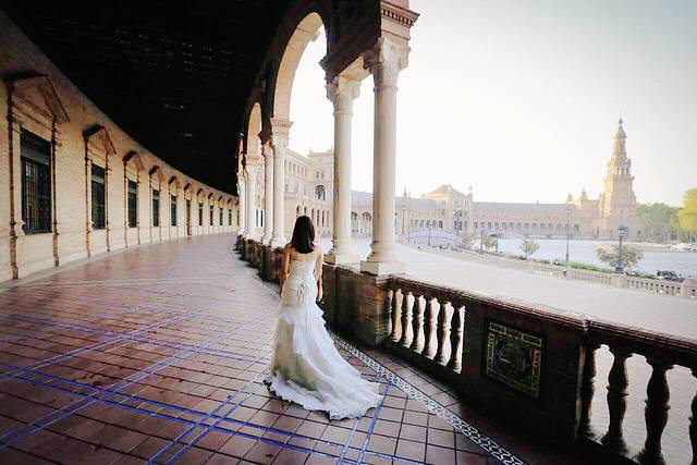 塞维利亚西班牙广场上的搞怪三连拍 那天的阳光出奇得美,旅游团在我们拍完后出奇得多