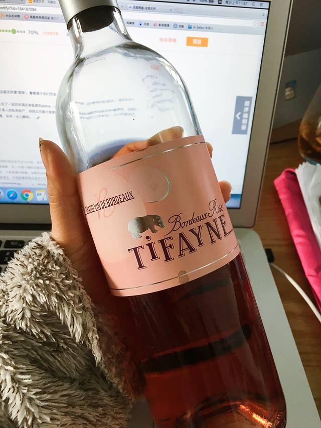 在波尔多入住了一间百年酒庄老板家的airbnb,装修别致的落地窗往外看便是他家的葡萄园,每片葡萄园都属于私有财产,经园主同意才能参观~波尔多产的葡萄更像蓝莓,小小的,蓝紫色,咬一口一点不酸。屋主家的葡萄酒logo是个犀牛,牌子叫TIFAYNE,我们背了3瓶他家的葡萄酒回国,价格在7-9欧之间。实拍一张他家的Rosé: