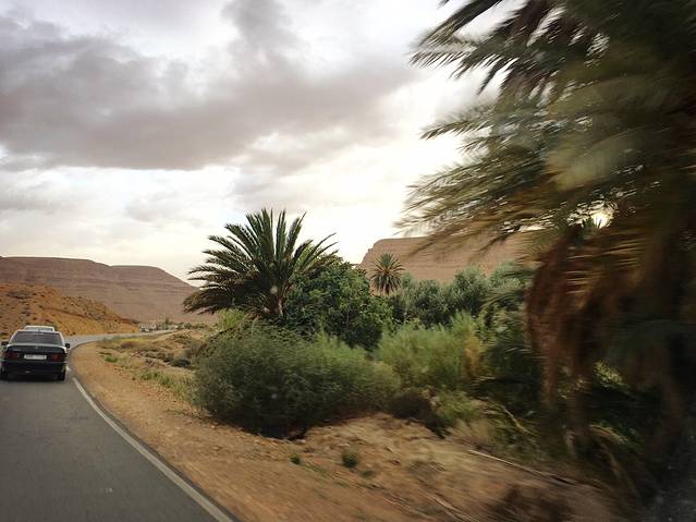 在北非自驾没想象得那么困难,但还是比欧洲路况差许多。尽管大部分道路修葺得还算平整,但开往梅尔祖卡的一路要么是土路、沙路,要么是盘山公路,有几处山路(外边就是悬崖)没设置防护栏,看得人心惶惶。胎压过低的警示灯也亮过几次,估计是路况不佳的关系吧。所以越野车更适合在北非自驾。