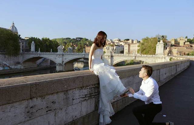 圣天使桥-罗马斗兽场-米开朗琪罗广场-西班牙台阶-许愿池,意大利是此行婚纱旅拍景点最多的国家,避开人山人海的唯一出路就是早起