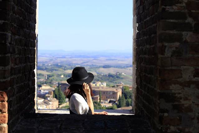 托斯卡纳的田园风光闻名遐迩,是自驾一路上最优美的风景。锡耶纳镇外有个停车场,将车停好后步行至镇中,街边的甜品店里有一种不知是否是当地特色的甜点,又香又脆夹着花生和巴旦木,真后悔没有多买几包 镇中的曼吉亚塔楼很显眼,一路虽爬得很辛苦,但能在塔顶俯瞰整个锡耶纳的风光也算值得。如果你正好遇到一个阳光灿烂的午后,可以学着外国盆友,躺在广场中央,任鸽子在你身边踱步,任时间慢慢慢慢地流……