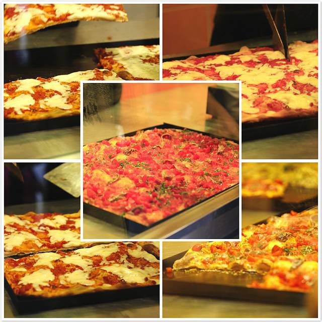 还是这样的小方块披萨好吃,因为一次可以吃很多种口味