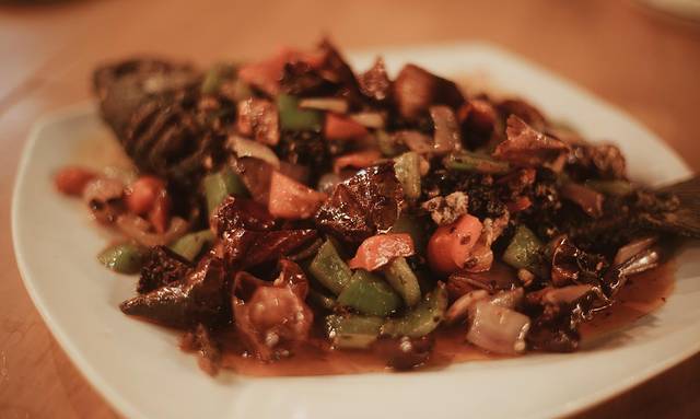 量大的有点儿惊人。服务员说,先放荤菜,再放素菜,最后放米线。