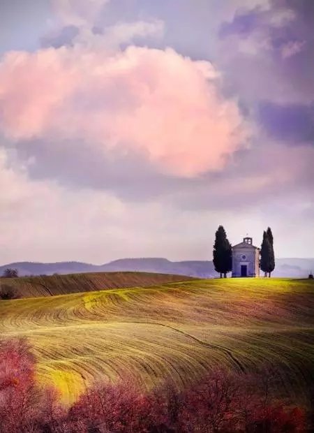 2003年有一部热门电影,叫作《托斯卡纳艳阳下》,将意大利的托斯卡纳拍得如同一幅出自世界著名大师手笔的美丽油画,美得让人心颤,美得让人恍如隔世。也使“小耳朵教堂”在摄影圈迅速走红,成为摄影爱好者追捧的热门打卡地。
