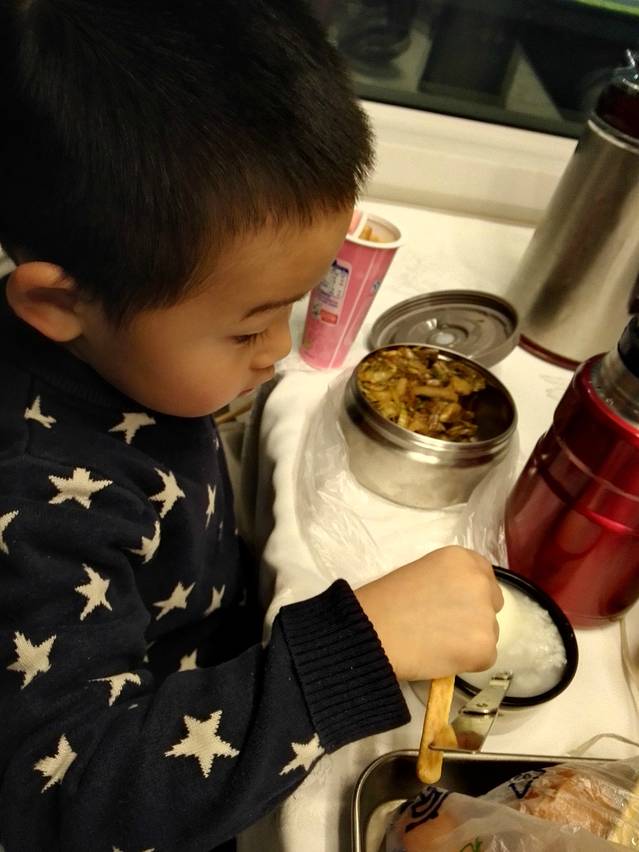 我们是坐的北京到上海的动卧去的。大概晚上7点半出发,早晨8点半到上海站。因为我们要去酒店放东西,所以基本上到迪士尼都已经十点多了。有条件的话建议在上海住一晚上然后第二天一早去,迪士尼八点开门,再早一点去可以大大减少排队时间。我们自己带的焖烧杯,我是下班就走的,所以下午提前焖好,晚上上火车就能喝粥了,我妈妈给我做了点小咸菜。火车上我和孩子一起吃。我们坐的动卧,很干净,晚上洗漱和去卫生间都很方便,没那么多人。而且床也比较大,如果不是很胖,一大一小可以睡得下,刚刚好。我们睡得很好。我也是一晚上睡的还不错。我是做减肥的,太胖的妈妈可以找我减减肥,呵呵。