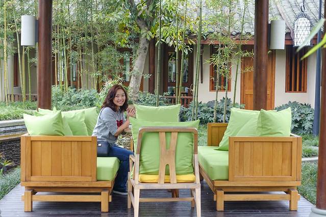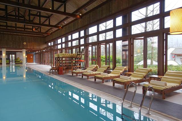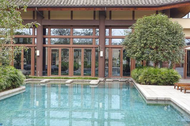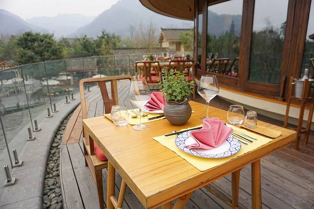再乱走就是西餐厅了,因为还没到下午5点半,还不能用餐。前面提到,我们订了3个人的半自助晚餐。青城山六善,这样的元素很多。游泳池也有自行车,D2的时候我会发出来。