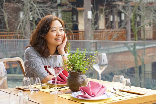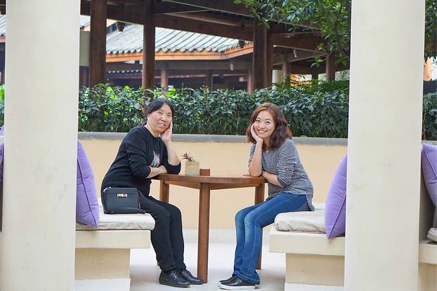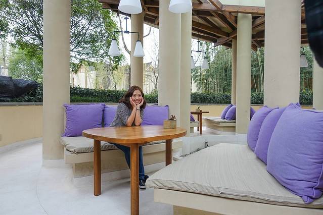 西餐厅外面有很多这样休息的地方,我们继续摆拍。