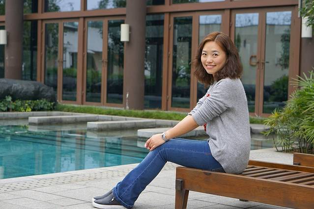 游泳池很漂亮,我的心情也很好。