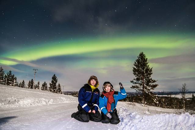 罗瓦涅米的位置正好被北极圈线穿过,虽然不是公认的最佳的看极光的位置(因为比较偏南,并且城市光影响较大)但我们仍然运气很好的在罗瓦涅米看到壮观的极光爆发。