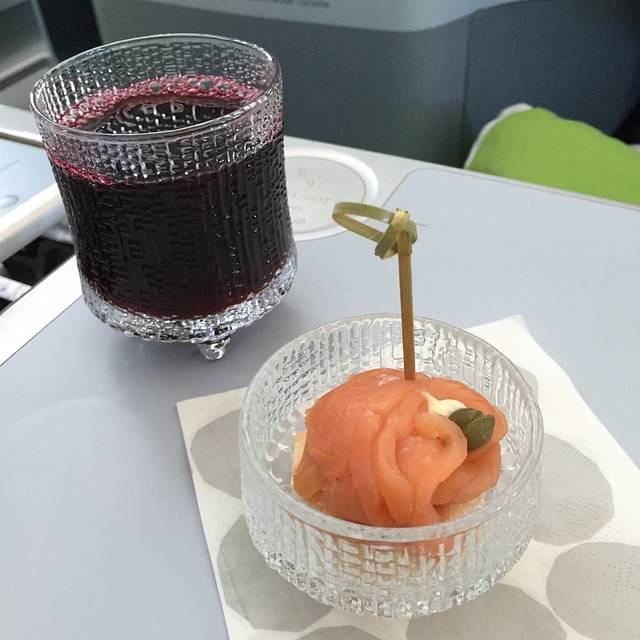 特别要说的是——飞机上的特别饮品:蓝莓汁!虽然到了芬兰后会每天吃各种莓的料理和饮料,但在飞机上喝到的蓝莓汁是我们觉得最好喝的,一定要多喝几杯!