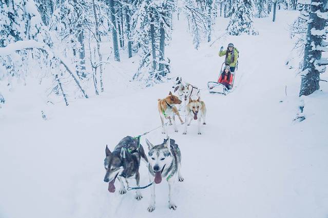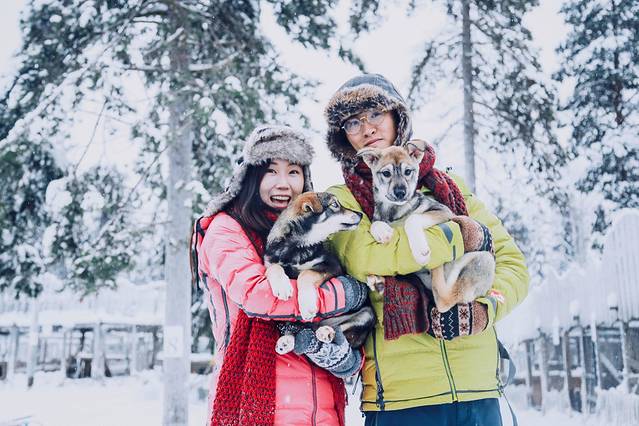 圣诞元素中,还有一个经典元素就是雪橇。这个只在北极圈的项目,在别的地方是基本体验不到的。在罗瓦涅米和普哈附近都有哈士奇农场。