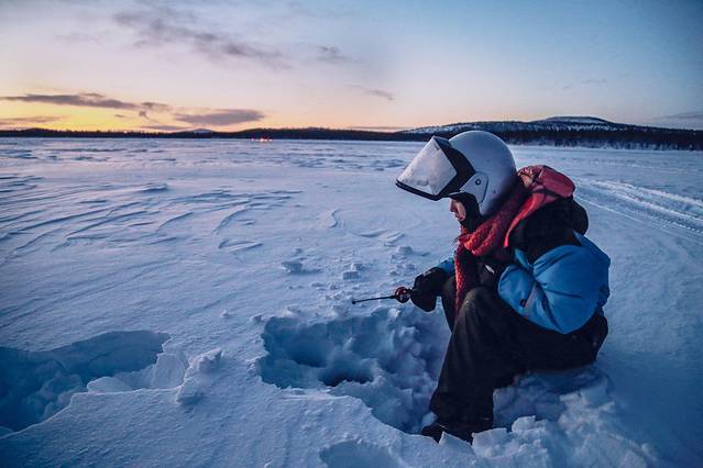 具体也是要在当地旅行社(可以酒店前台联络)报名。由当地向导骑着雪地摩托带你飞驰,穿过伊纳里湖的冰面,穿过湖畔的森林来一趟北极的冰钓之旅。