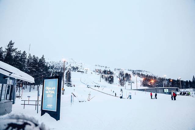 Pyhä在传统萨米语和芬兰语中是”神圣(Saint)“的意思,这里是萨米人的圣地,旁白的圣湖Pyhä lake传说中是圣诞老人真正的住处——耳朵山所在的地方。Pyhä有这一带整片平原唯一的山丘,多种坡度的地势也因此让这里成为芬兰人滑雪的独家好去处,休假的季节,很多芬兰家庭会带着孩子到这里租下一个木屋,白天滑雪晚上烤火,享受天伦之乐。