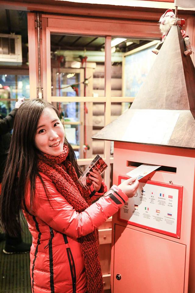 来到圣诞老人村不能错过的还有圣诞邮局,这里有各式各样的明信片可以选购,价格在1欧到2欧,另外要在前台购买邮票,一般1欧左右。写好了以后直接扔进邮筒就好,有两个邮筒可以选择,一个是即刻寄出,另一个是让邮局留到当年的圣诞节前再寄出,而且所有从这个邮局寄出的信件都会被盖上来自北极圈的特质邮戳哦~