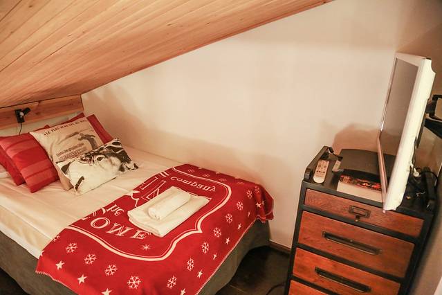 我们在这里的住处是Pyhä Suite。不同于传统酒店,这是一排双层小公寓。里面基本是按照芬兰风格的家设计的,厕所厨房客厅应有尽有。一楼是客厅餐厅,浴室和一间双人卧室;木质楼梯上到二楼还有两间双人卧室,独立厕所,和一张给孩子的单人床。也就是最多可以满足7人的住宿,很适合一群好朋友或者大家庭一起来住。