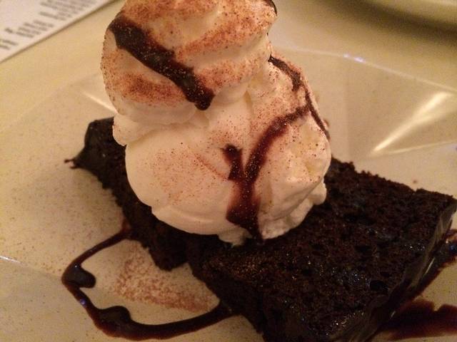 Two layer of rich & moist chocolate cakes topped with vanilla ice cream & smothered with whipping cream & chocolate fudge.