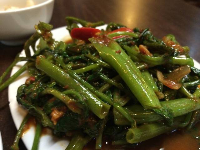 Phak Bung Pad Kapi (Kang Kong fried with Chili belacan)
