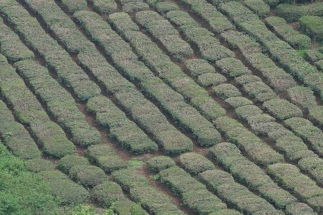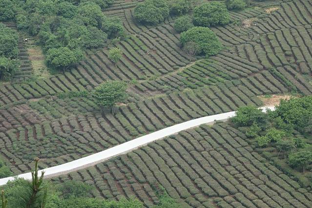 在山上看到的茶树,因为施工的原因,颜色不是绿绿的了。