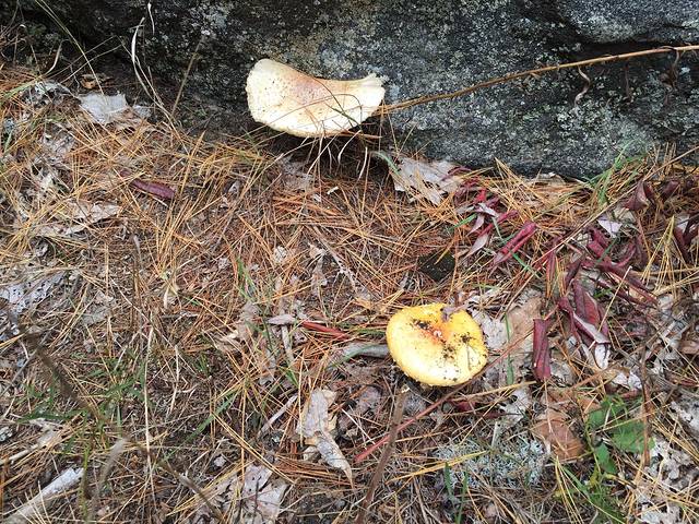 大概是潮湿的原因,地上有很多这种大蘑菇,也不知道有没有毒。真想拿回去煮来吃吃。