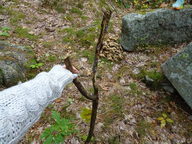 这种路都不大好走,但是地上有很多这种粗粗的树枝,拿来当拐杖正好,大概是前人们留下来的。拿在手上走路的时候有一种魔戒里面远征的感觉!还有一种古人赶路的感觉!(不好意思脑洞开大了)