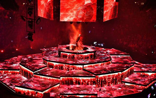 香港红磡体育场是以舞台为中心的一圆球形封闭会场。封闭式的会场的灯光效果和音效比露天会场好上几百倍,小型会场里的每一个位置都可以清楚的看到舞台,我们的位置也只是靠后排的,但看的效果跟国内那些大型体育场里前排位置的效果一样!强烈推荐这种小型封闭式体育场看表演,这样才不虚此行!