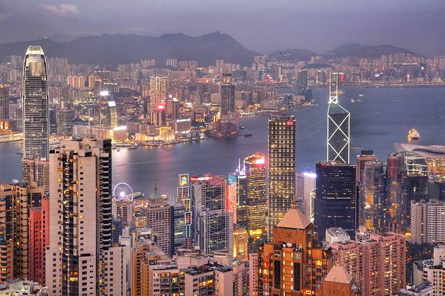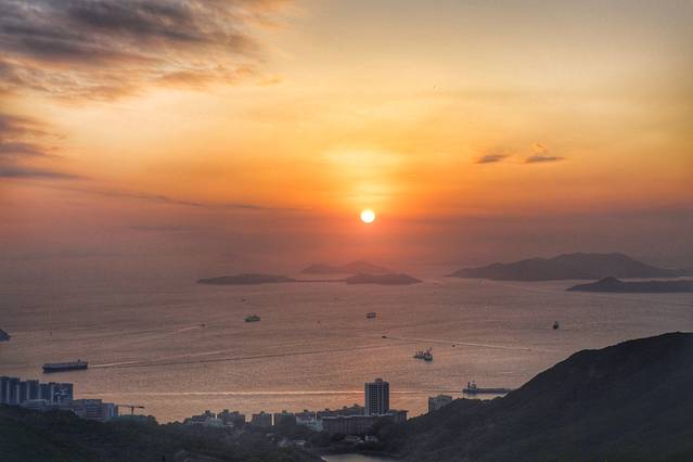 香港的高楼密集,沿着海湾建筑,从山顶一眼望去,鳞次栉比的楼群夹着一湾海湾,这是人类发展的作品,是繁华拥挤的景观。不知为什么我们要被这种钢铁森林迷了眼。