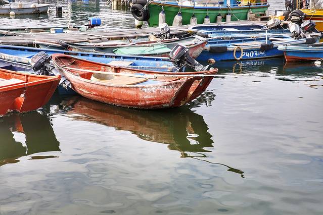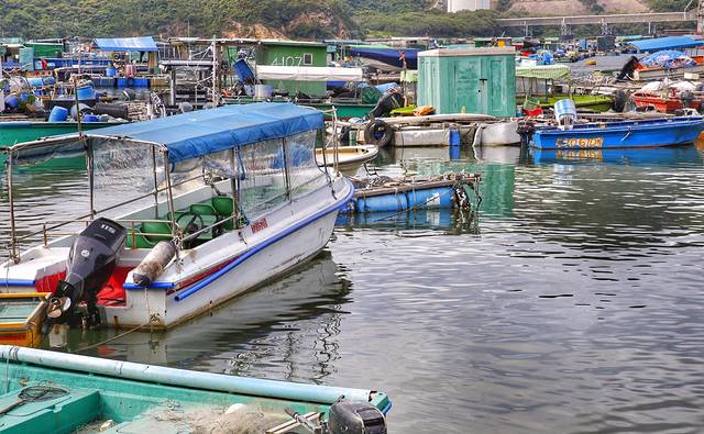 港湾边停泊的渔船,海边的儿女都是靠海吃海,千万要保护这份幸运