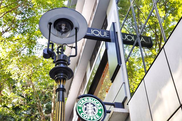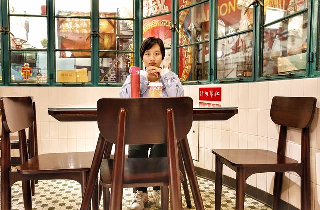煤气灯的旁边就是这家最具香港特色的星巴克咖啡厅,点了满满的一杯馥芮白,和littlelittle互拍起来