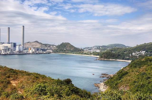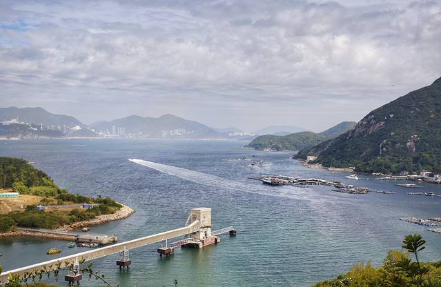 山的另一边,少了高楼大厦,多的是一份静谧。远处的三个烟囱矗立的岛便是南丫岛了