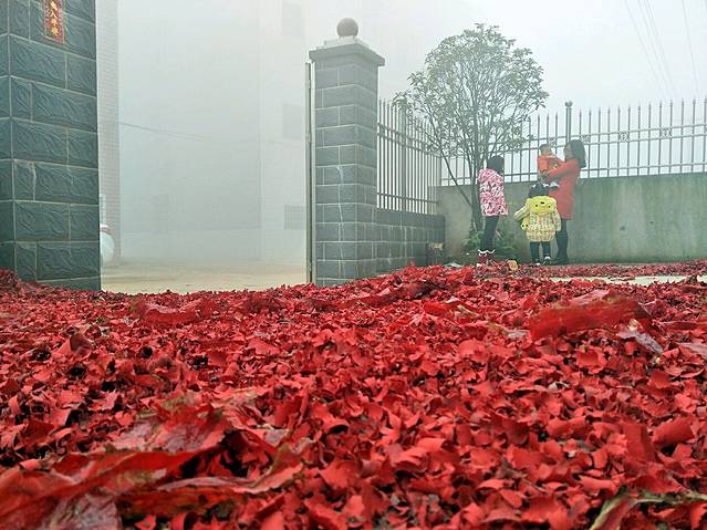 一早起来雾茫茫,鞭炮声此起彼伏,领了任务贴红纸,开工。