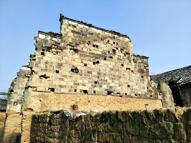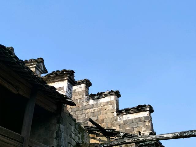 村子里有很多老房子,房顶很有气势,老房子的墙都很有年代感。