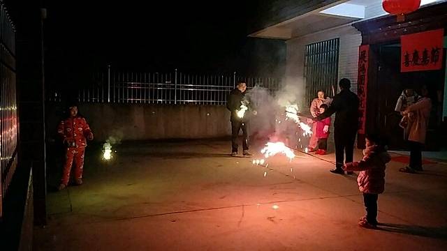 乡下的晚上很安静,不像在城里,晚上十二点一过就到处都是噼里啪啦的鞭炮声,这里鞭炮声基本上远远近近,因为村与村、户与户之间隔得不是那么近,所以我们难得在大年三十晚上睡了个安安稳稳的好觉。养足了精神,起床吃面出门拜年啦!