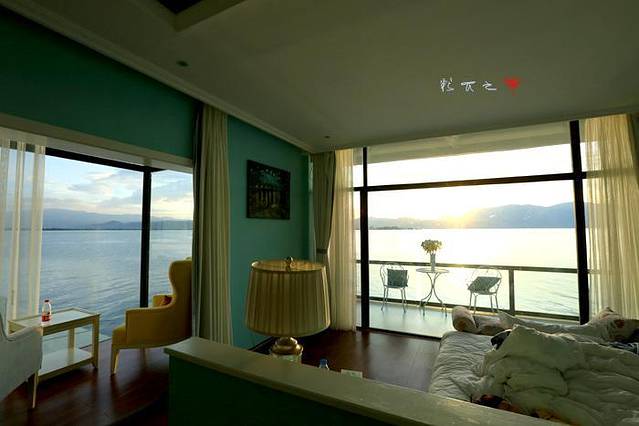 喜洲桃源伴蓝海景酒店,确实是海景,一片海景,酒店内的设施非常齐全,而且酒店内的设施都是比较高档,连牙具洗发水等都是名牌,值。顶楼露台强大,房间阳台强大,酒店玩露台也强大,关键是住在喜洲这边安静,而且没有大工地,到了晚上就是安安静静的,非常适合休闲度假。不过点名批评的是,这酒店老是没热水,比较烦人,大人倒还好,关键还有小孩,没办法忍受,其他的真不错。