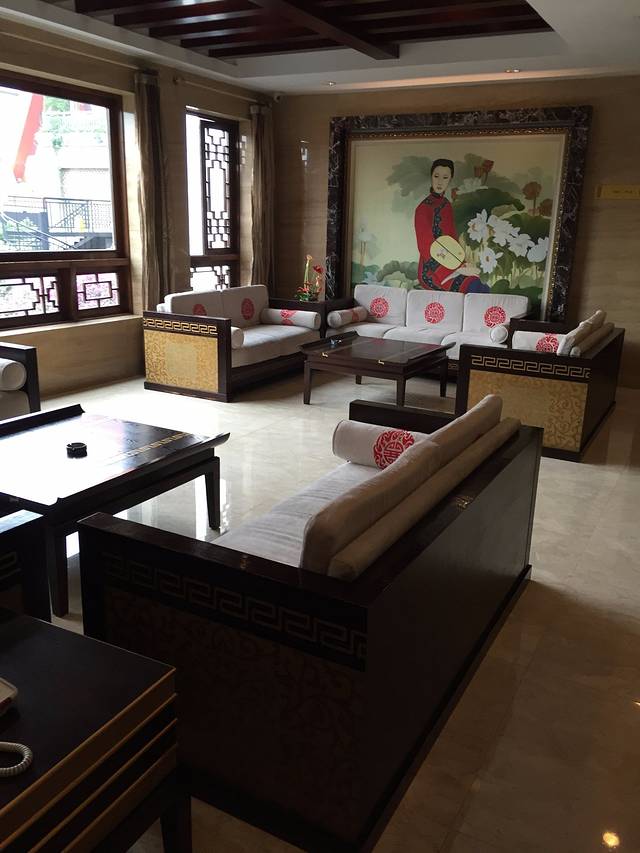 房间的装饰很有特色,有种古色古香的感觉。房间很大,有一块区域是专门用来喝茶看景的。订房的时候一定要定B和D,都是可以看到江景的。A和C都是靠崖的。