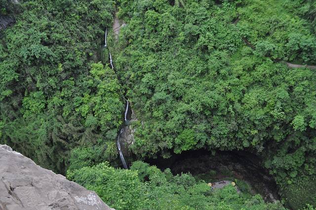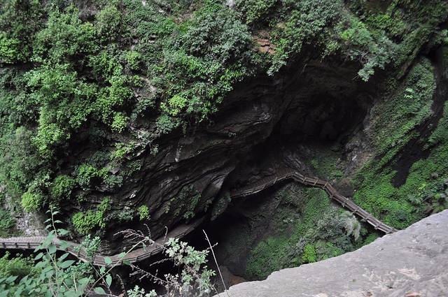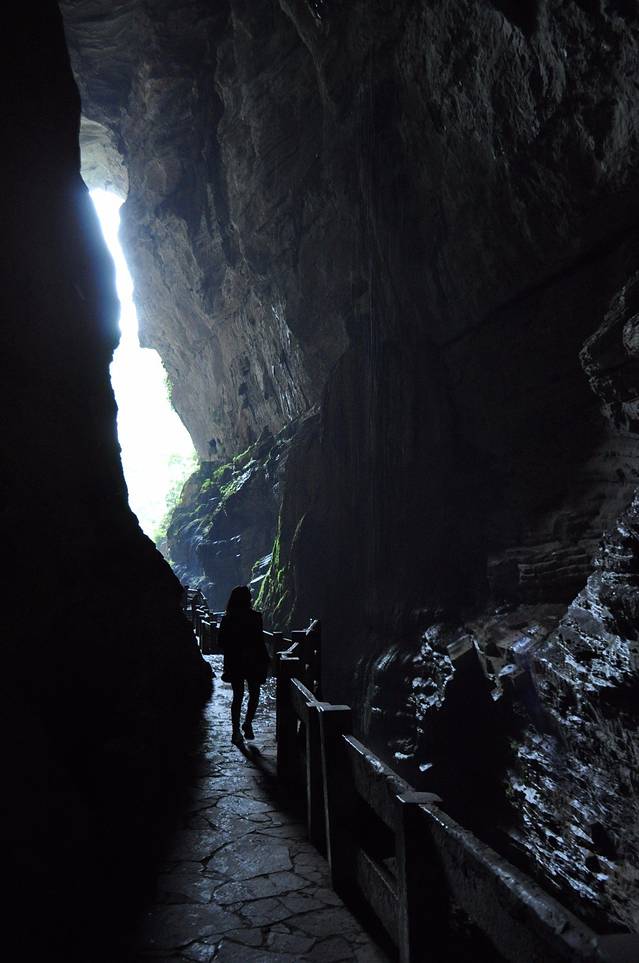 地缝和天坑的景色差别很明显。顾名思义,地缝可以看到很多悬崖峭壁和通往地下的石缝,整个景区比天坑要昏暗一些,也更阴冷,但个人认为景色有过之而无不及。